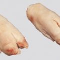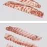 The belly shall be removed by a straight cut (a slight dorsal curvature is acceptable) from a point that is ventral to, but not more than 4.0 inches (10.0 cm) form, the longissimus at the blade end to a point on the sirloin end which I s ventral to, but not more than 3.0 inches (7.5 cm) from the longissimus. Surface fat shall be trimmed to an average of 0.25 inch (6 mm) in depth. Lumbar fat shall be trimmed to not exceed 0.5 inch (13 mm) in depth. The tenderloin shall remain intact. The spinal cord groove shall be evident on at least 75 percent of the vertebrae.