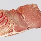 This item is prepared from Item No. 410. The blade and the sirloin portions are eliminated by straight cuts made approximately perpendicular to the split surface of the backbone and the length of the loin. The sirloin is removed anterior to the hip bone and associated cartilage exposing the gluteus medius. The blade portion shall be removed to leave not more than eight ribs present. Floating rib(s) which do not show a cross-section at the belly side are exempt.